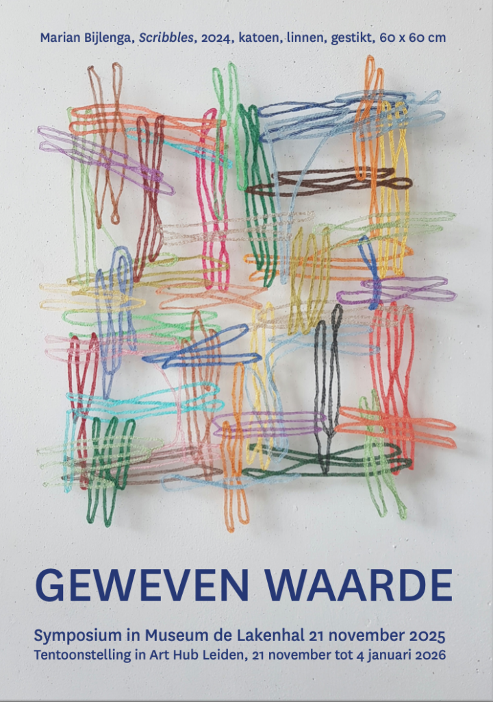 Graag willen wij u op de hoogte stellen van de Call for Papers, waarmee de Textielcommissie in het bijzonder studenten, early-career academici en makers uitnodigt om bij te dragen aan het volgende nummer van Studies in Textiel. Dit nummer heeft als thema ‘Geweven waarde’ en draait om de vele manieren waarop er momenteel onderzoek wordt gedaan naar de blijvende waarde van textiel. We zouden zeer dankbaar zijn wanneer u deze Call met geïnteresseerde studenten en collega’s zou willen delen. Het nummer sluit aan bij het symposium ‘Geweven waarde’ dat de Textielcommissie op vrijdag 21 november 2025 organiseert in Leiden. Op die dag opent ook de tentoonstelling Geweven waarde in Leiden Art Hub.